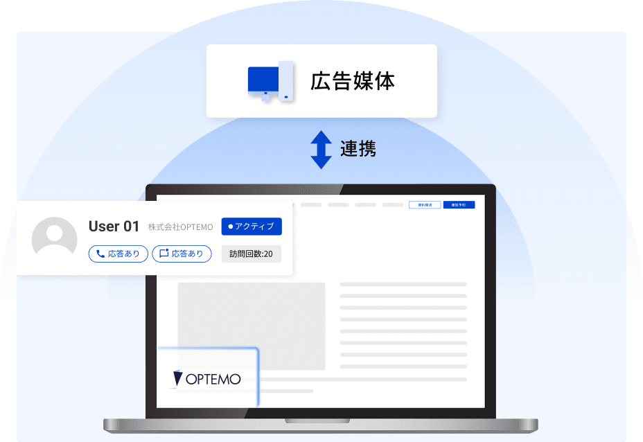 サイト上で得たCVデータや温度感の高い顧客情報を広告媒体と連携。リアルな検討状況を学習データとして活用することで、広告の配信精度と最適化を高めます。