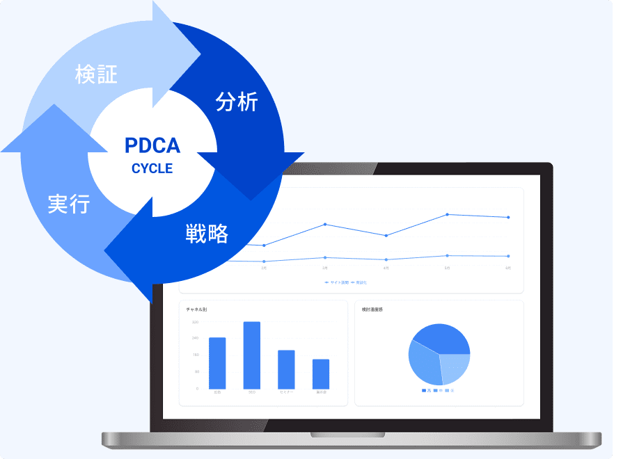 CS担当が継続的に伴走し、データを活かした改善を提案。数字だけでなく顧客の体験にも目を向け、成果が出るまで一緒にPDCAを回します。